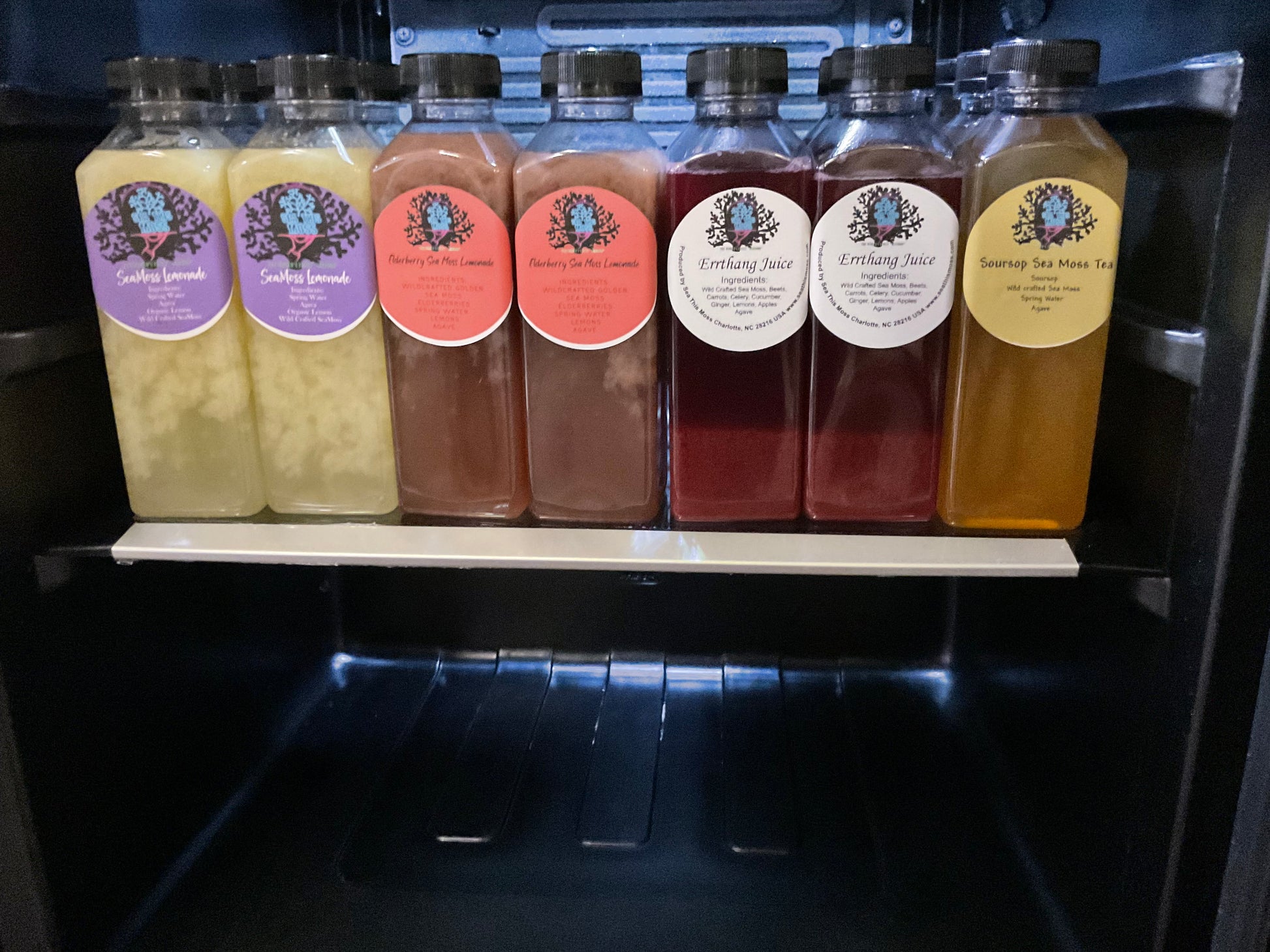 Elderberry Lemonade, Errthang Juice, and Sea Moss Soursop Tea health drinks